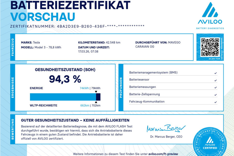 - Sicherheit: Umfassende Werksgarantie bis 12/2026; Garantie auf Batterie und Antriebseinheit sogar bis Dezember 2030 (oder 192.000 km).