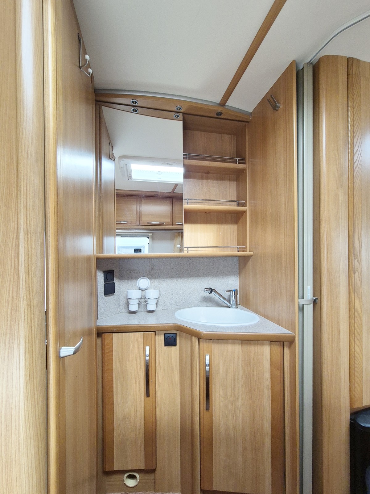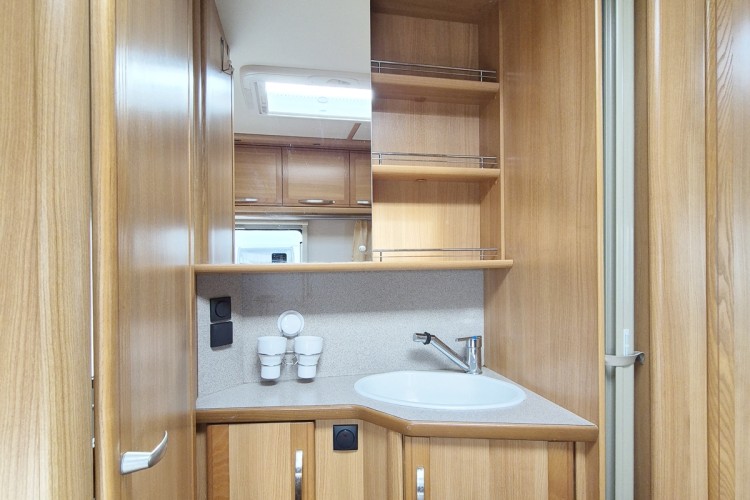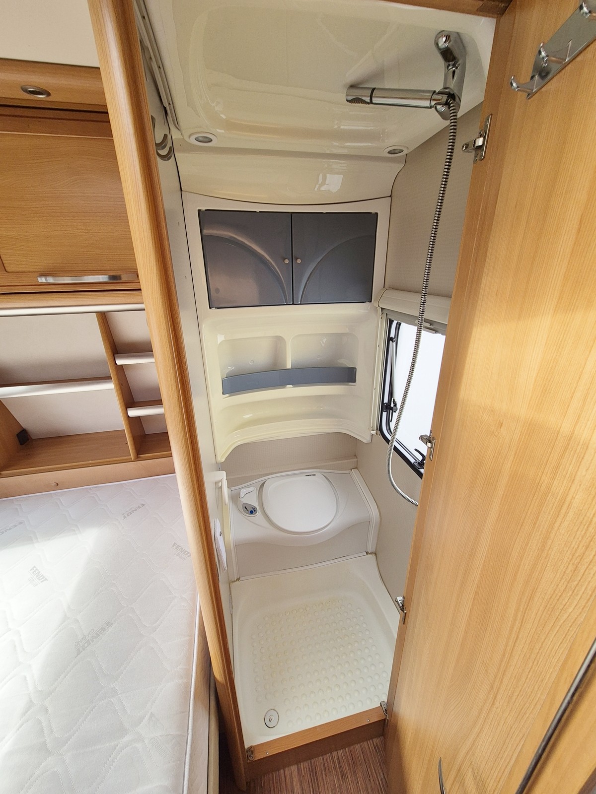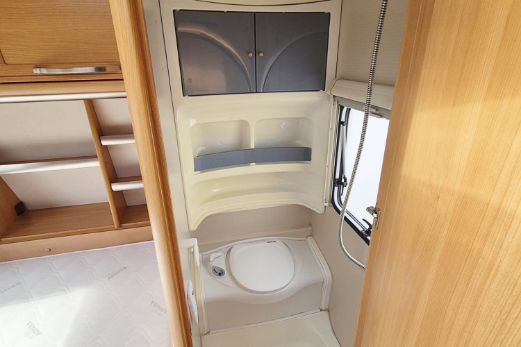 Große Nasszelle mit integrierter Thetford Toilette mit Abwassertank