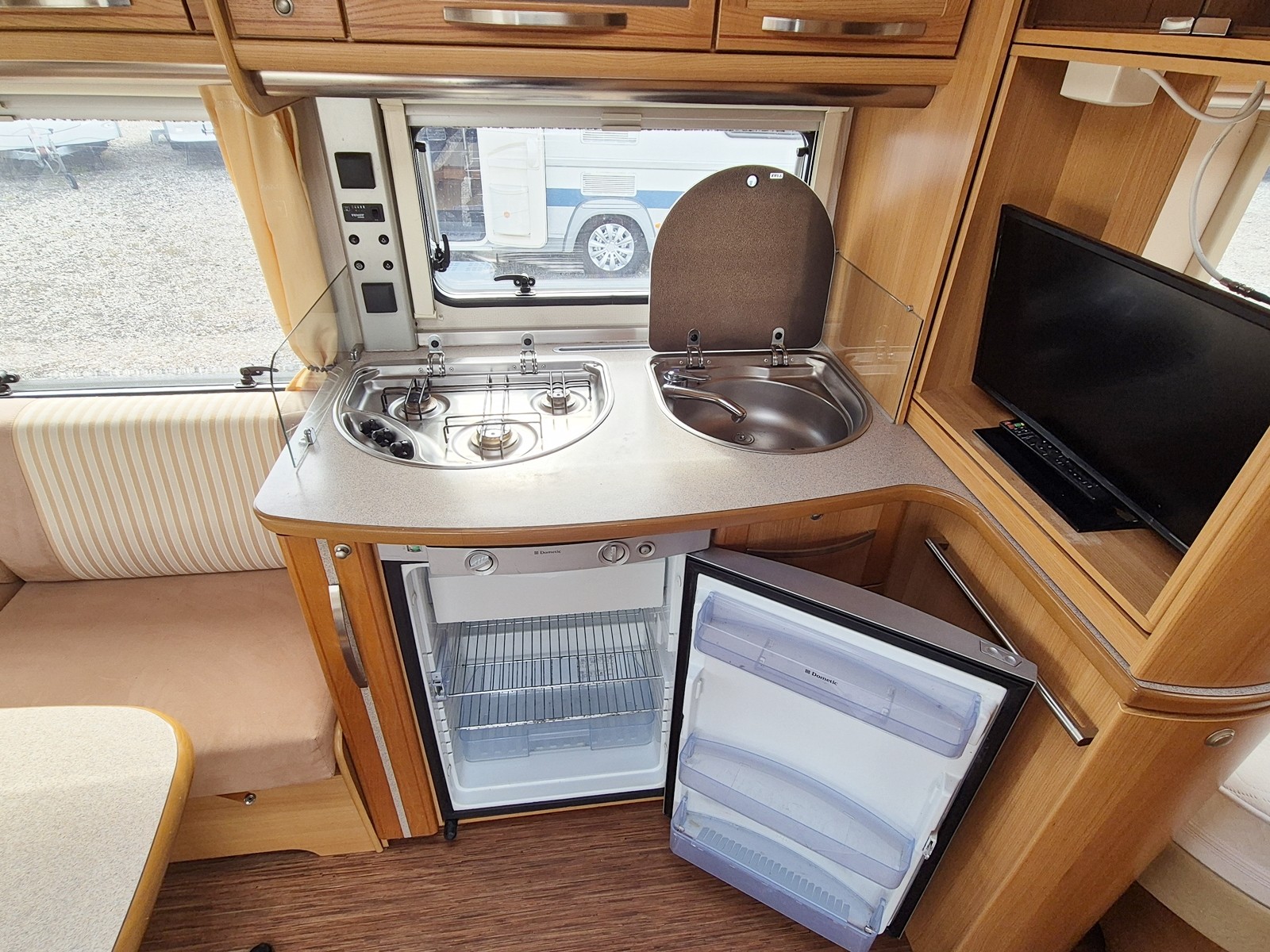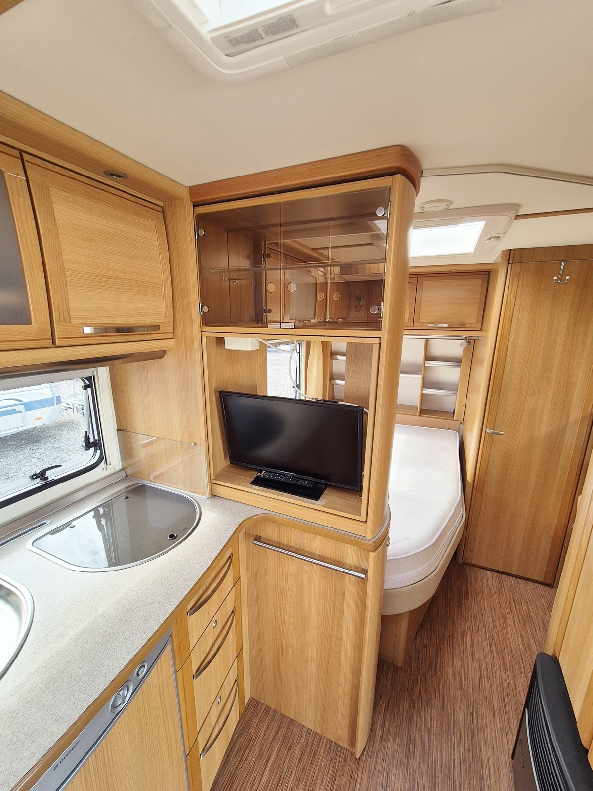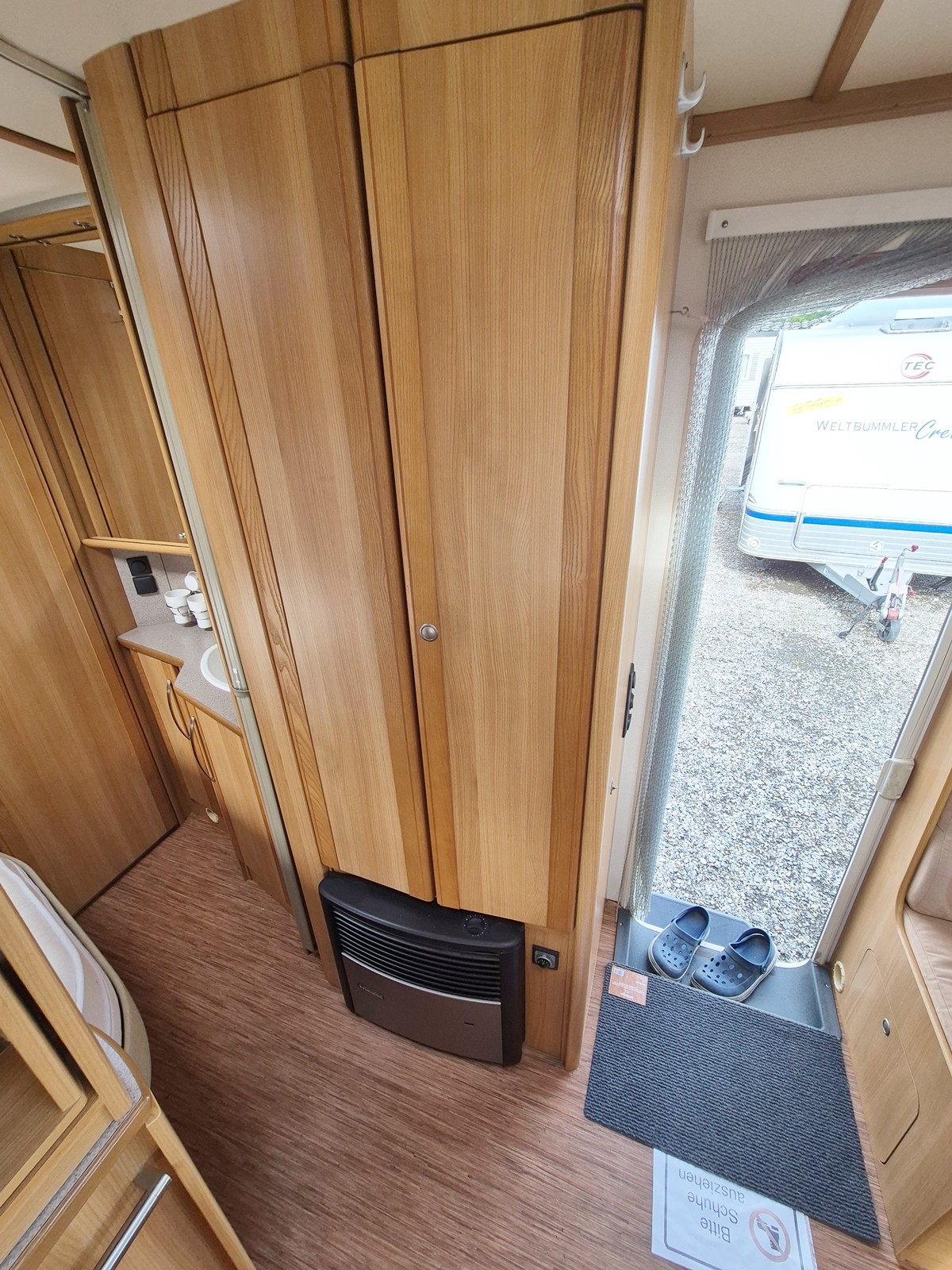 Große Nasszelle mit integrierter Thetford Toilette mit Abwassertank